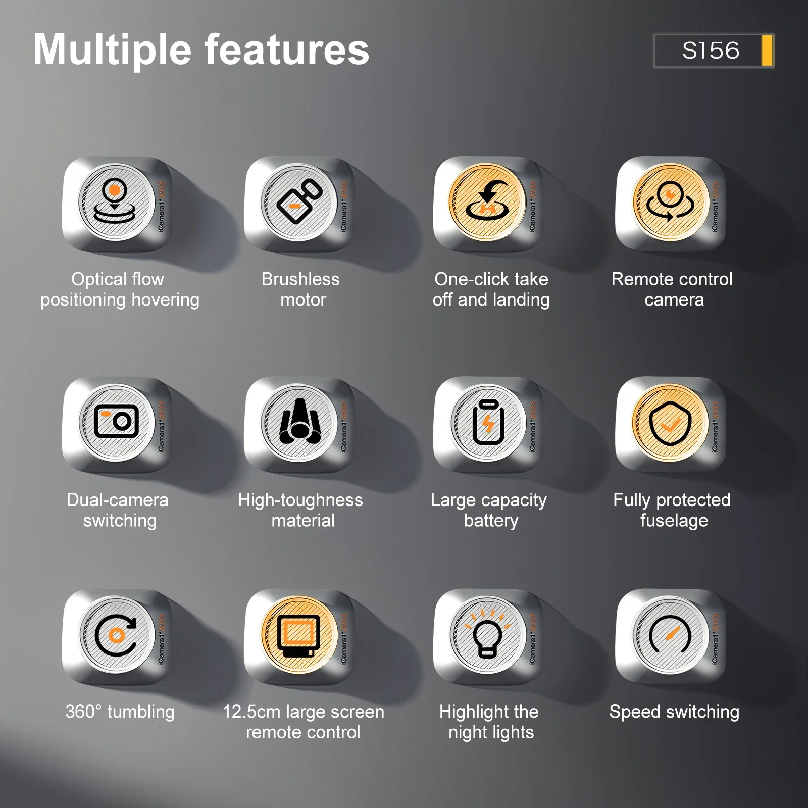 Height Hold Mode,one key takeoff/landing, rise and fall, forward and backward, left and right side flight, steering, headless mode (camera features: gesture photography, video, headless mode, emergency stop, trajectory flight, gravity sensing, music, 50X zoom, automatic photography)"